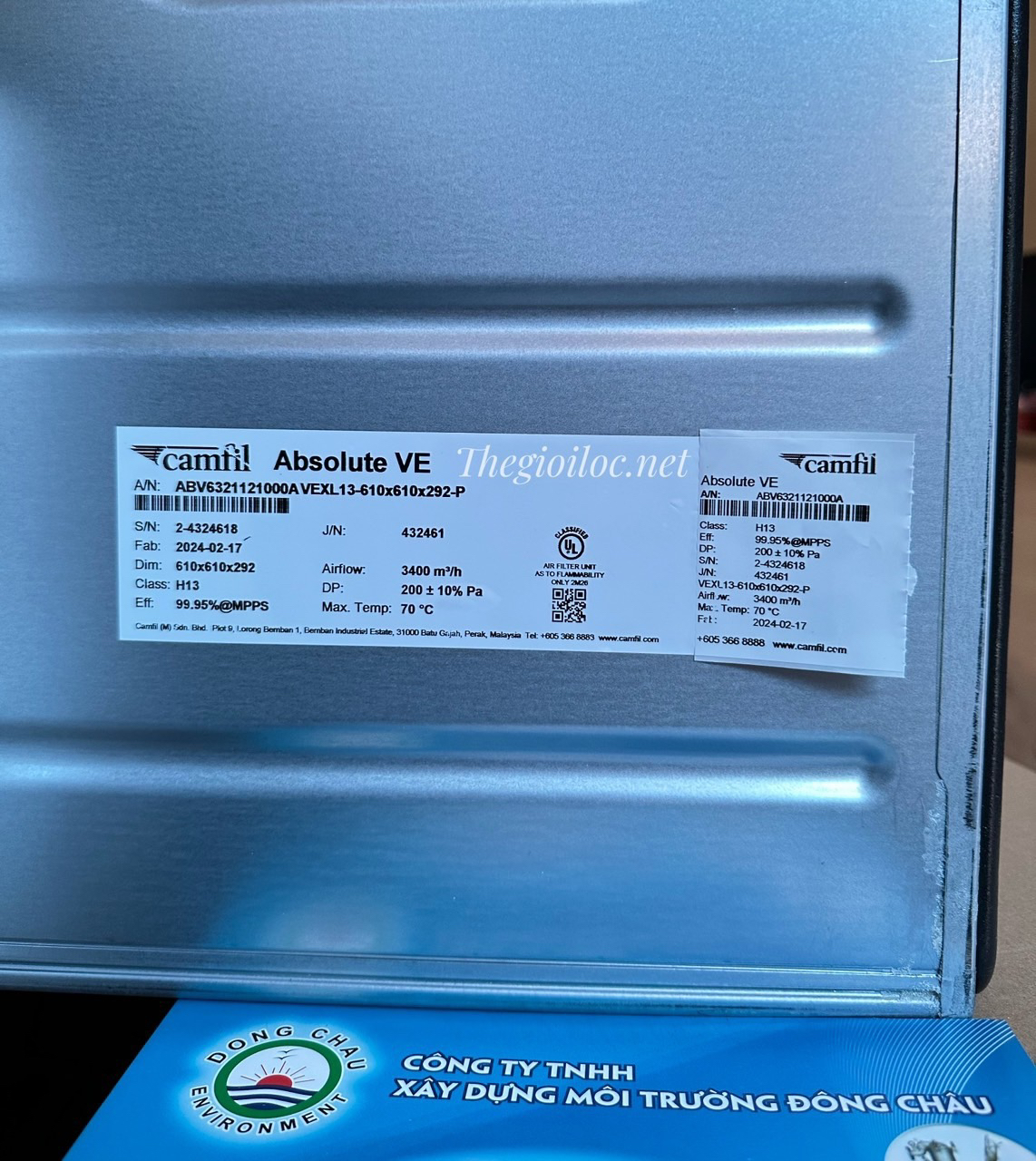 Mỗi bộ lọc Absolute™ V được kiểm tra và chứng nhận theo tiêu chuẩn EN 1822, với một giao thức kiểm tra quét riêng và được đánh số trên nhãn sản phẩm.