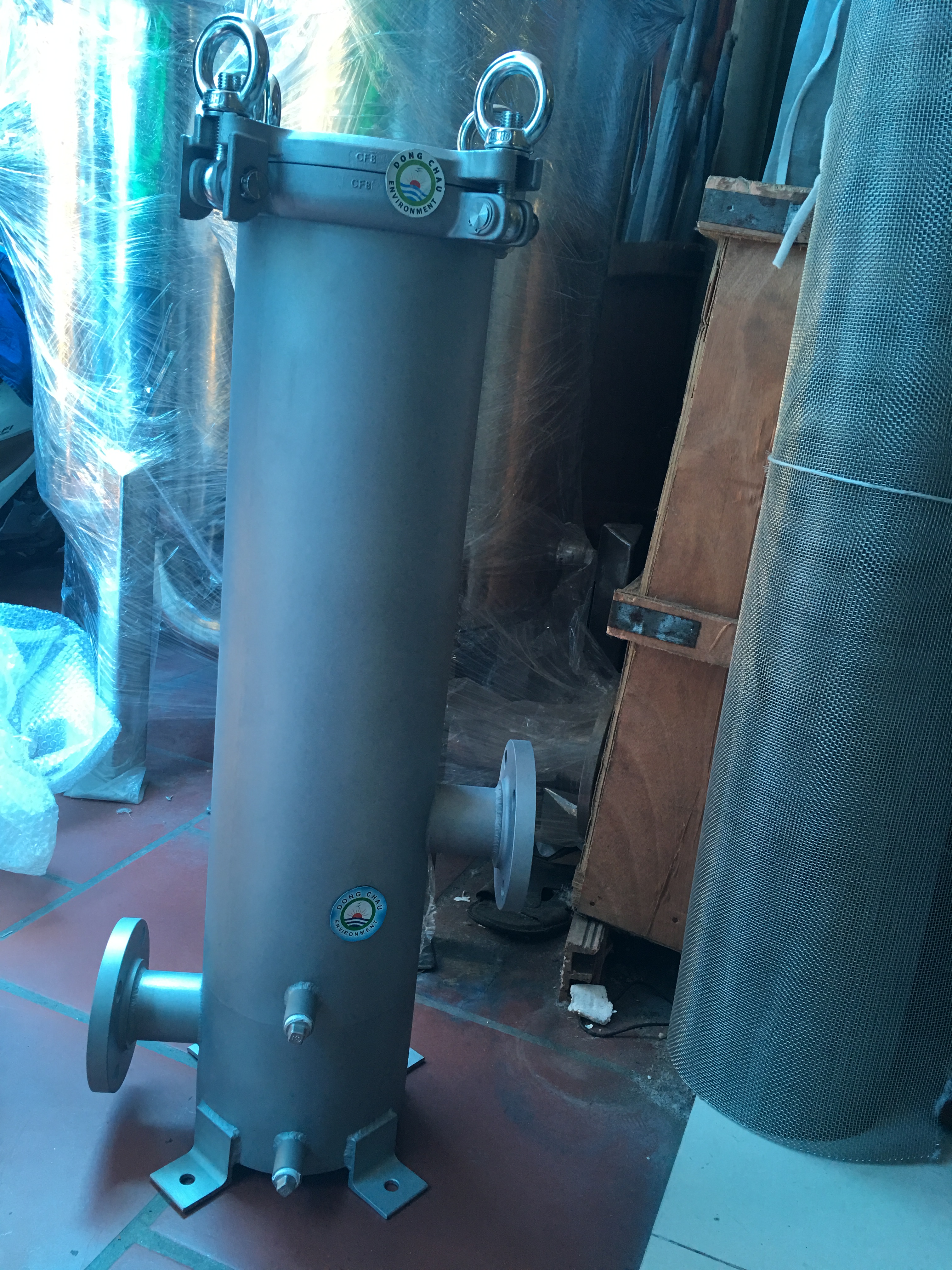 Bình lọc 3 lõi 20 inch DOE SIN bu lông đóng kín và khóa đóng bằng lò xo. Chất liệu bằng thép không rỉ 304, kết nối DOE.