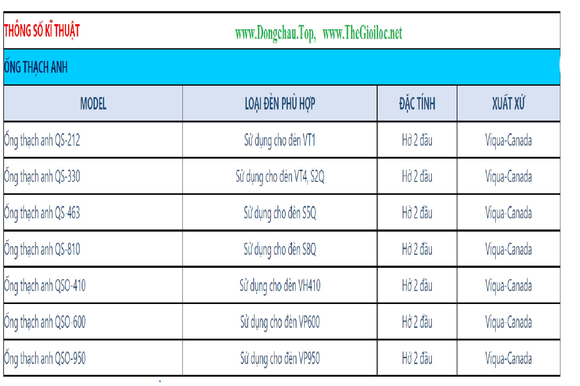 Sản phẩm ống thạch anh Viqua được nhập khẩu trực tiếp vào nước ta thông qua các nhà phân phối Đông Châu chính hãng.